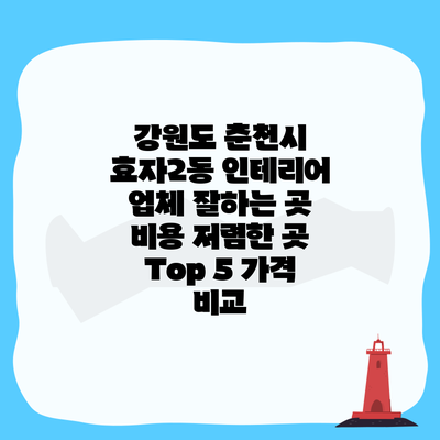 춘천시 효자2동에서 인테리어 업체를 찾을 때, 비용이 저렴하면서도 퀄리티가 높은 업체를 고르는 것이 중요해요. 아래는 효자2동에서 인기 있고 비용이 저렴한 인테리어 업체 5곳을 정리한 표입니다. 각 업체의 특징과 제공하는 서비스, 예상 비용 등을 구체적으로 살펴보도록 할게요.