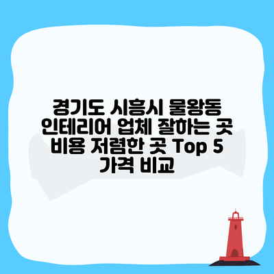 경기도 시흥시 물왕동에서 인테리어 업체를 고르실 때는 많은 요소를 고려해야 해요. 가격, 서비스 품질, 고객 후기 등 다양한 기준으로 업체를 비교해 보는 것이 중요합니다. 여기에선 물왕동에서 추천할 만한 인테리어 업체 TOP 5를 정리해 보았어요.