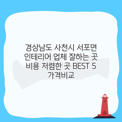 경상남도 사천시 서포면 인테리어 업체 비용 비교 및 추천 TOP 5