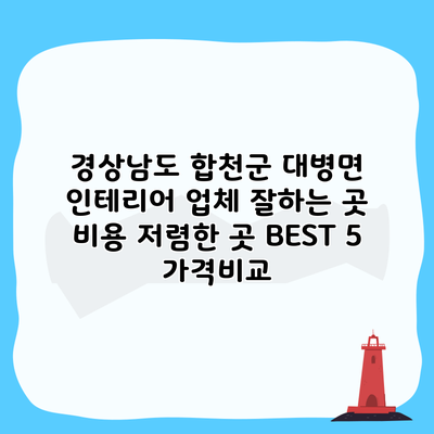 합천군 대병면에서 가장 저렴하고 믿을 수 있는 인테리어 업체 5곳 비교