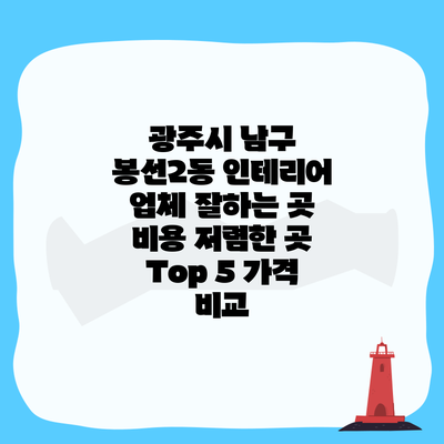 A1: 광주시 남구 봉선2동에서는 XYZ 인테리어, ABC 디자인, 포인트 인테리어, 드림 하우스, 모던 인테리어 등 다양한 인테리어 업체들이 추천됩니다.