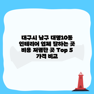 대구시 남구 대명10동의 인테리어 업체에 대한 비교 분석을 통해, 이 지역에서 인테리어 서비스를 제공하는 다양한 업체의 특징과 가격대를 살펴보았어요. 이러한 정보는 인테리어를 계획하는 고객들에게 매우 유익한 자료가 될 수 있습니다.