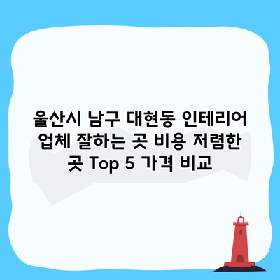 대현동에서 인테리어 업체 선택은 정말 중요한 일이에요. 다양한 업체가 있지만, 그 중에서 품질과 서비스, 가격 면에서 두각을 나타내는 업체들을 소개할게요. 아래는 울산시 남구 대현동에서 추천하는 인테리어 업체 Top 5를 정리한 표입니다.