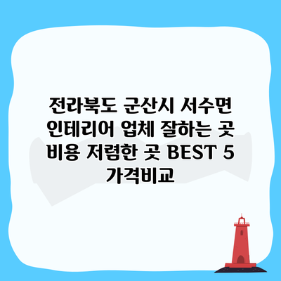 전라북도 군산시 서수면에서 저렴하게 인테리어를 고려하고 계신가요? 그렇다면 저희가 추천하는 비용 저렴한 인테리어 업체 TOP 5를 소개해 드릴게요. 이들 업체는 가격은 저렴하면서도 품질은 우수한 서비스를 제공합니다. 아래의 표를 통해 자세히 알아보세요.